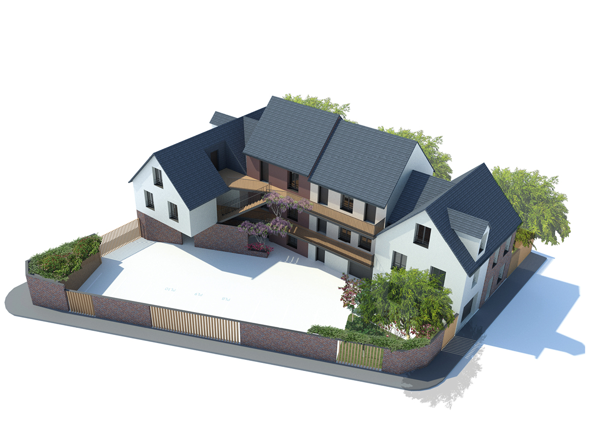 Ce projet de construction de 10 logements semi-collectifs s’implante en plein coeur d'un quartier pavillonnaire du Havre et possède une surface de 645m².